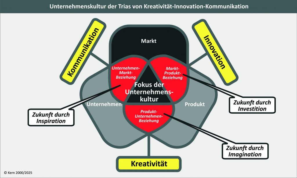 Innovation ist kein Einmal-Kraftakt, sondern Ergebnis einer andauernden Unternehmenskultur: Ohne Kreativität keine Innovation! Ihnen Innovation keine Kommunikation! Ihnen Kommunikation keine Kreativität!